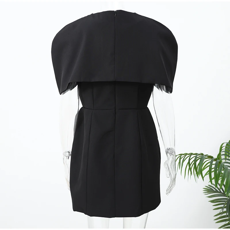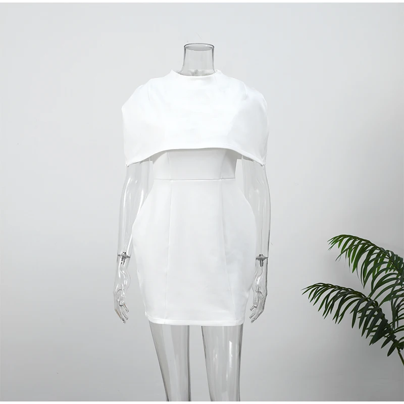 Removable top Cape high waisted two piece slip mini dress.