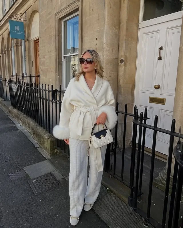 Elegant Faux Fur cropped and long trench coat wrap coat fall coat
