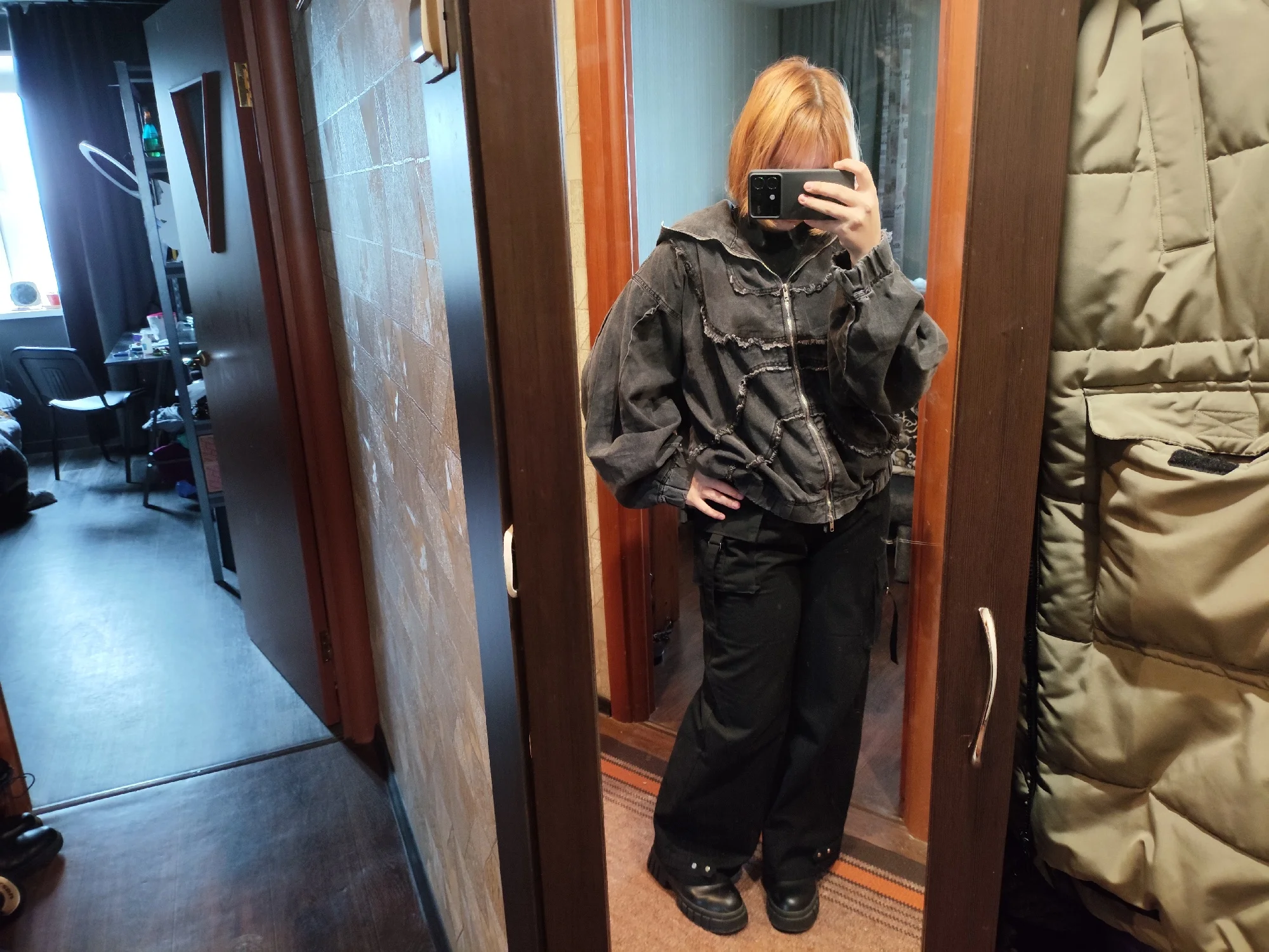 Chaqueta con capucha vaquera de gran tamaño estilo retro.