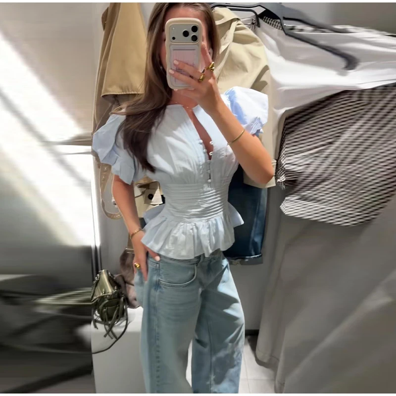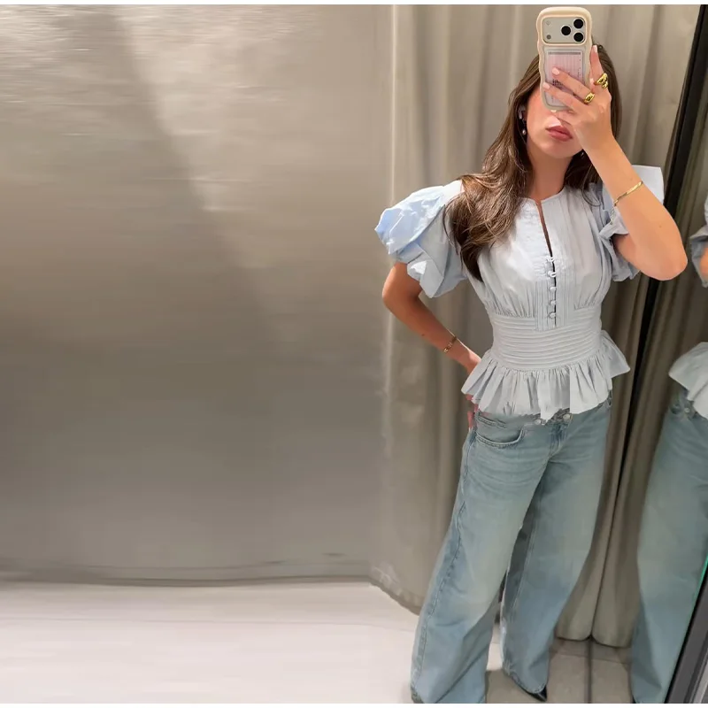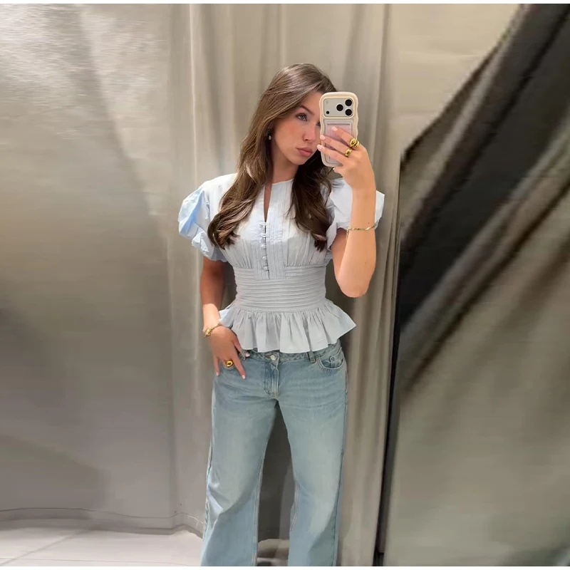 Sky Blue Ruffled Blouse – Effortless Spring Elegance