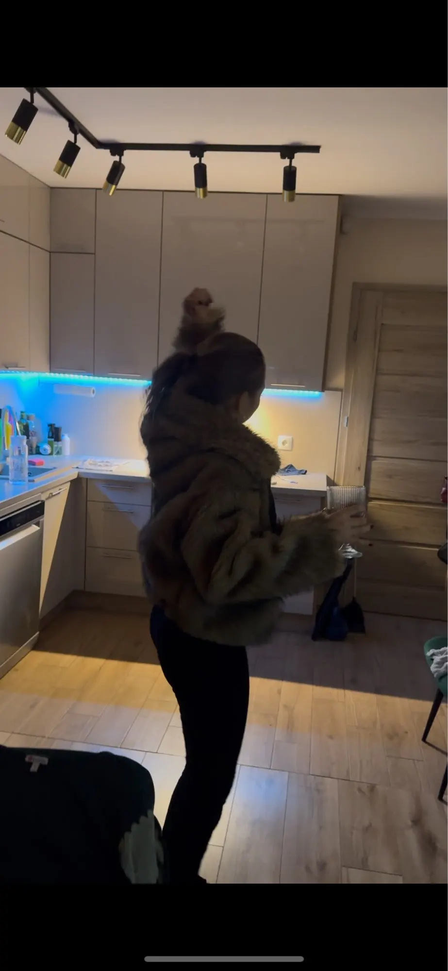 black faux fur coat