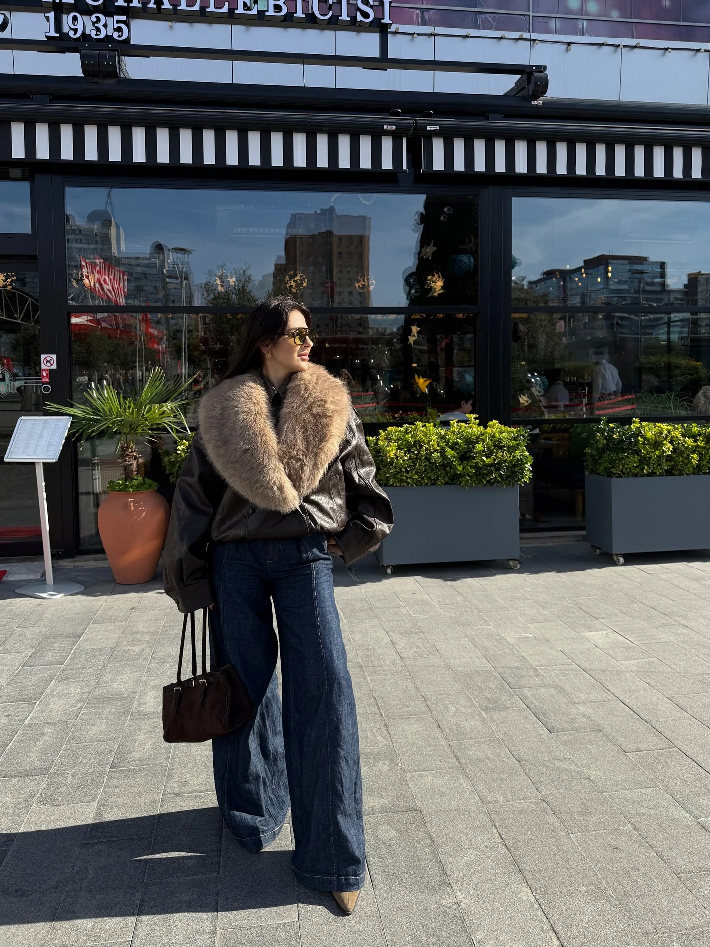 Fur Collar Faux Leather oversized Jacket Bomber Jacket.