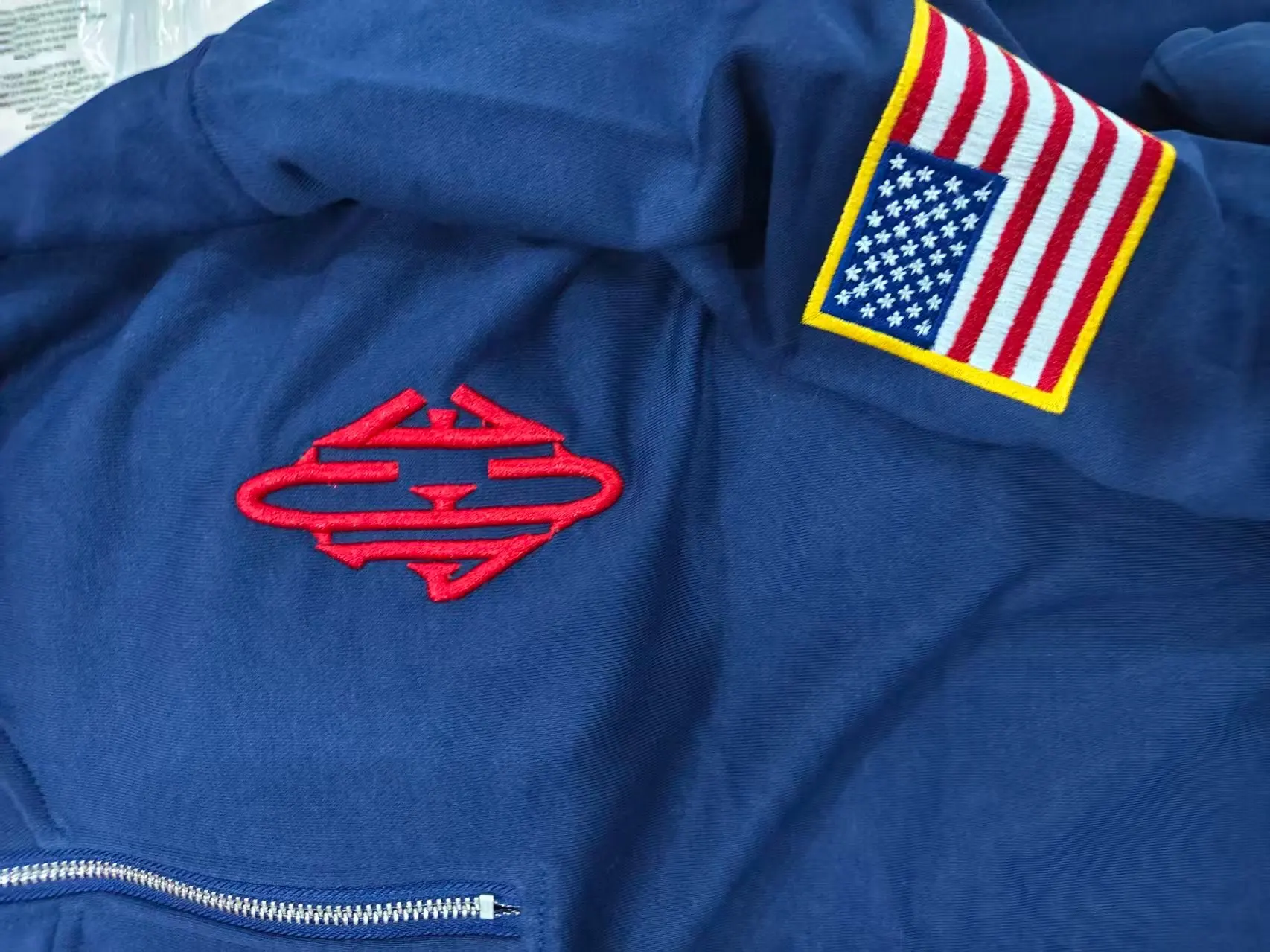 Jeff Epstein Quarter Zip American flag Oversized sweater.