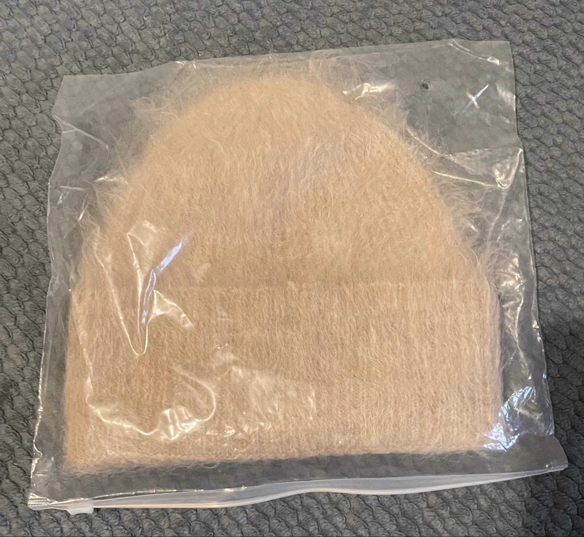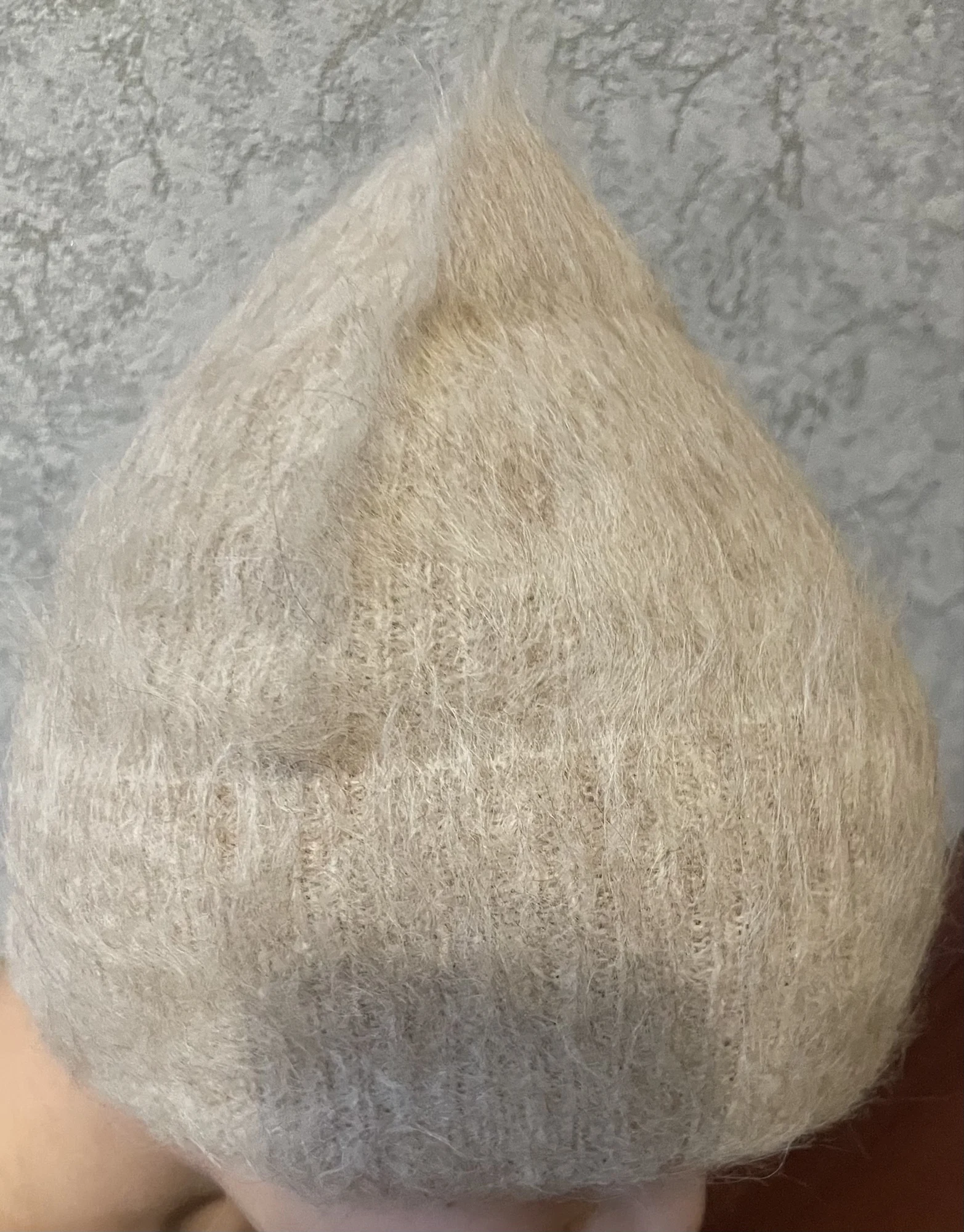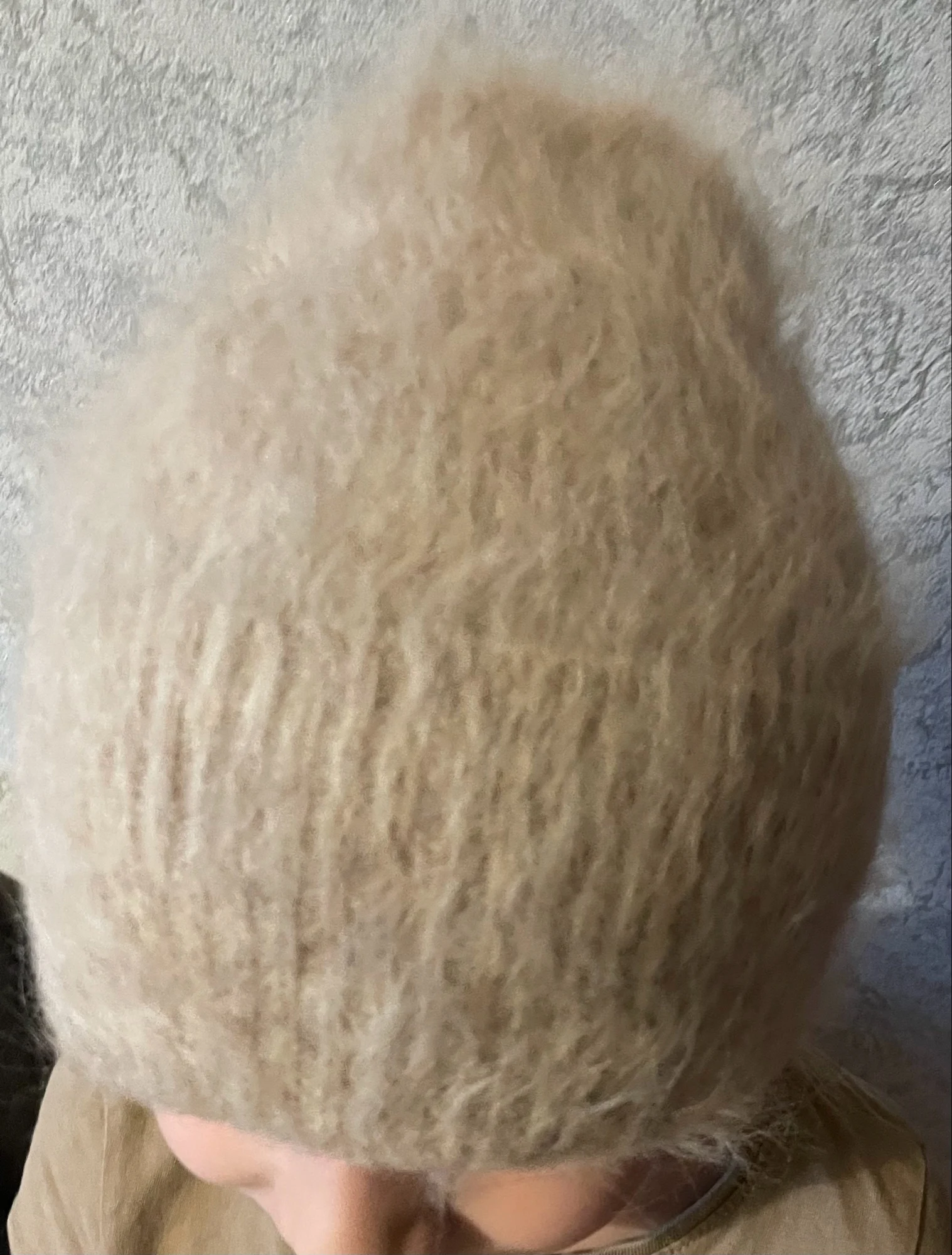 The hat is excellent, fluffy, with a brim, fits well on a size 57 head, factory knit, has a label with yarn composition. The seller included a small gift. Thank you to the seller for a quality product and very fast delivery.