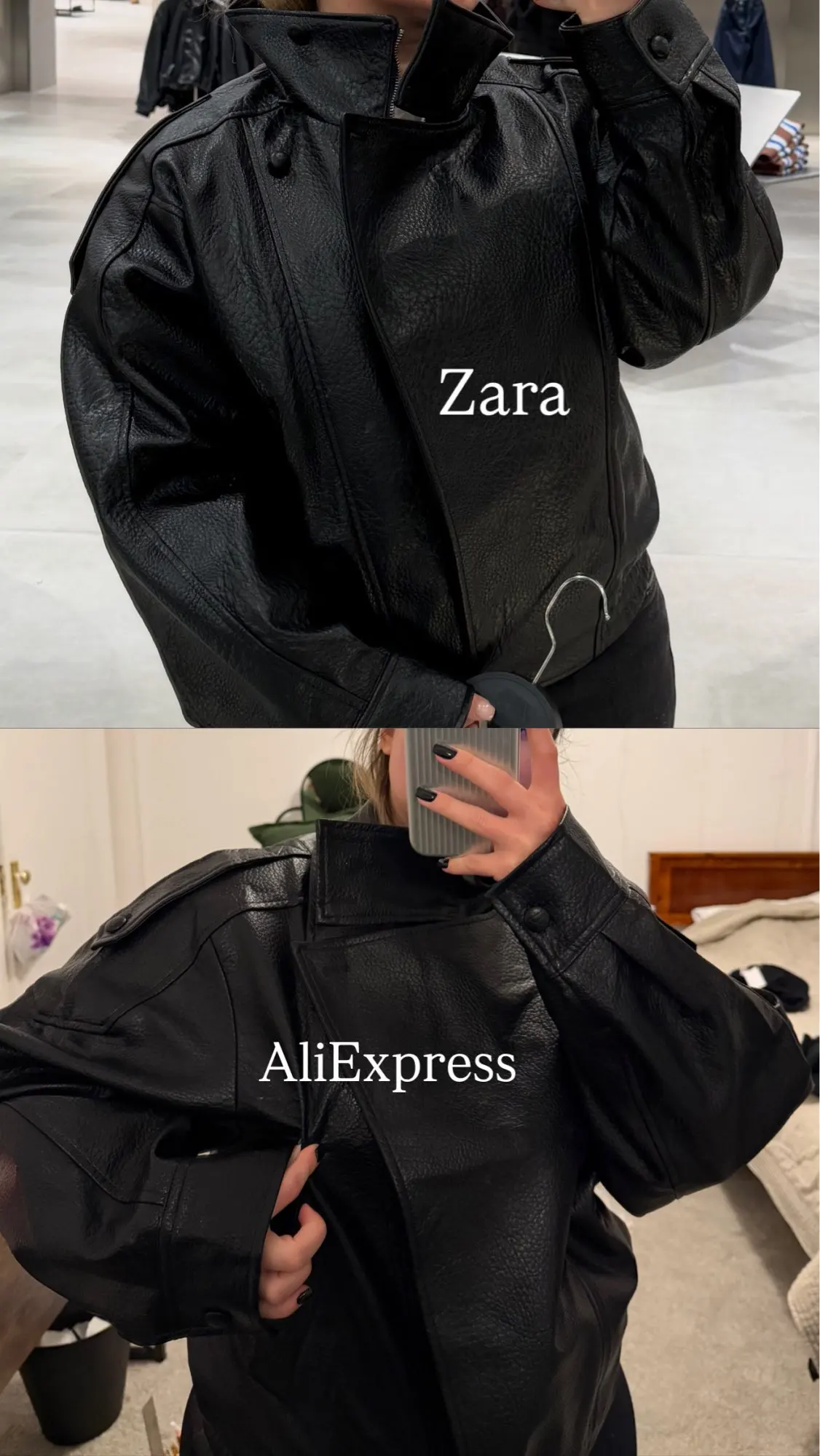 Zara uses a much denser material, and the leather looks more expensive. You can even wear it in winter and feel fine.